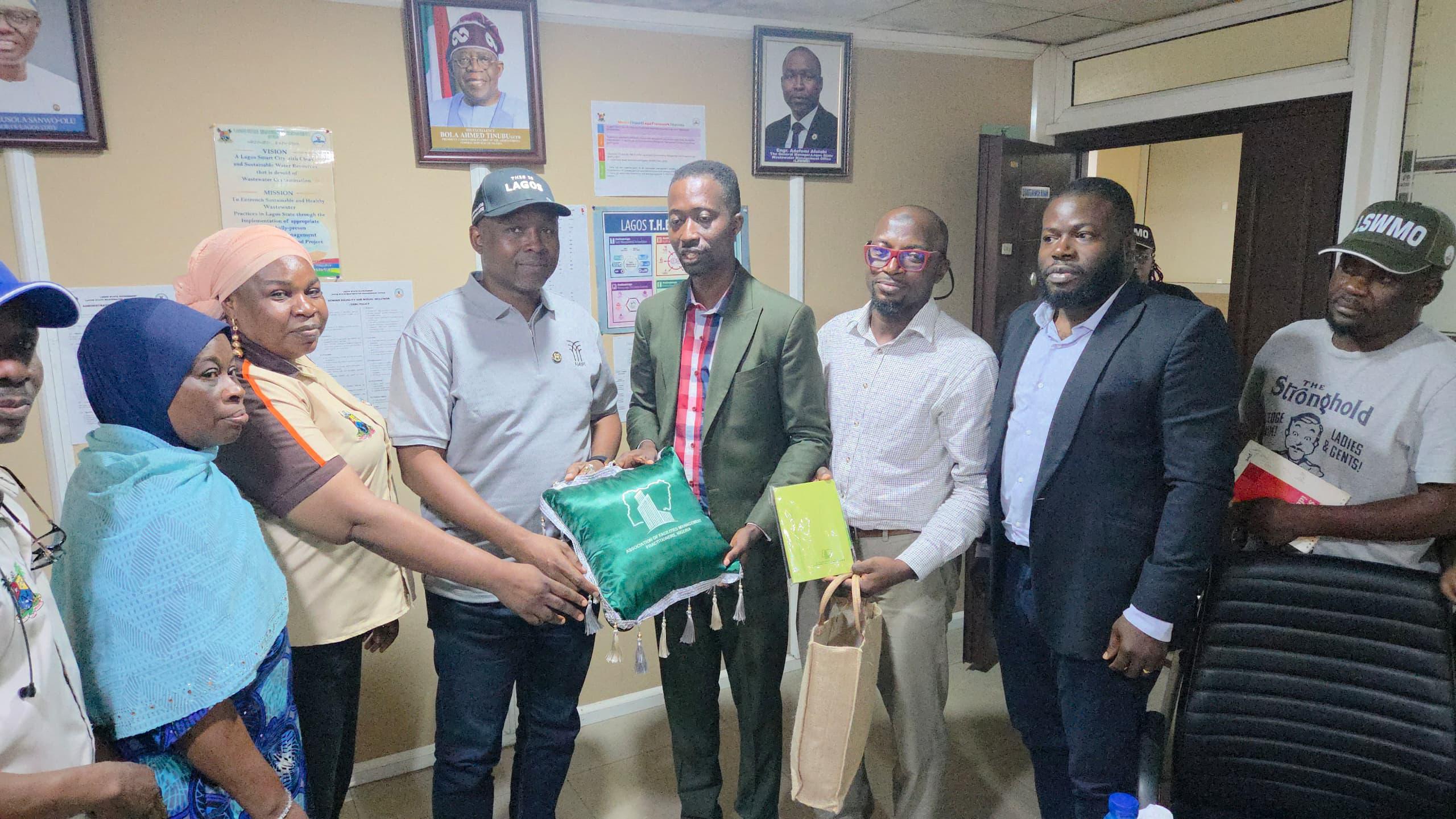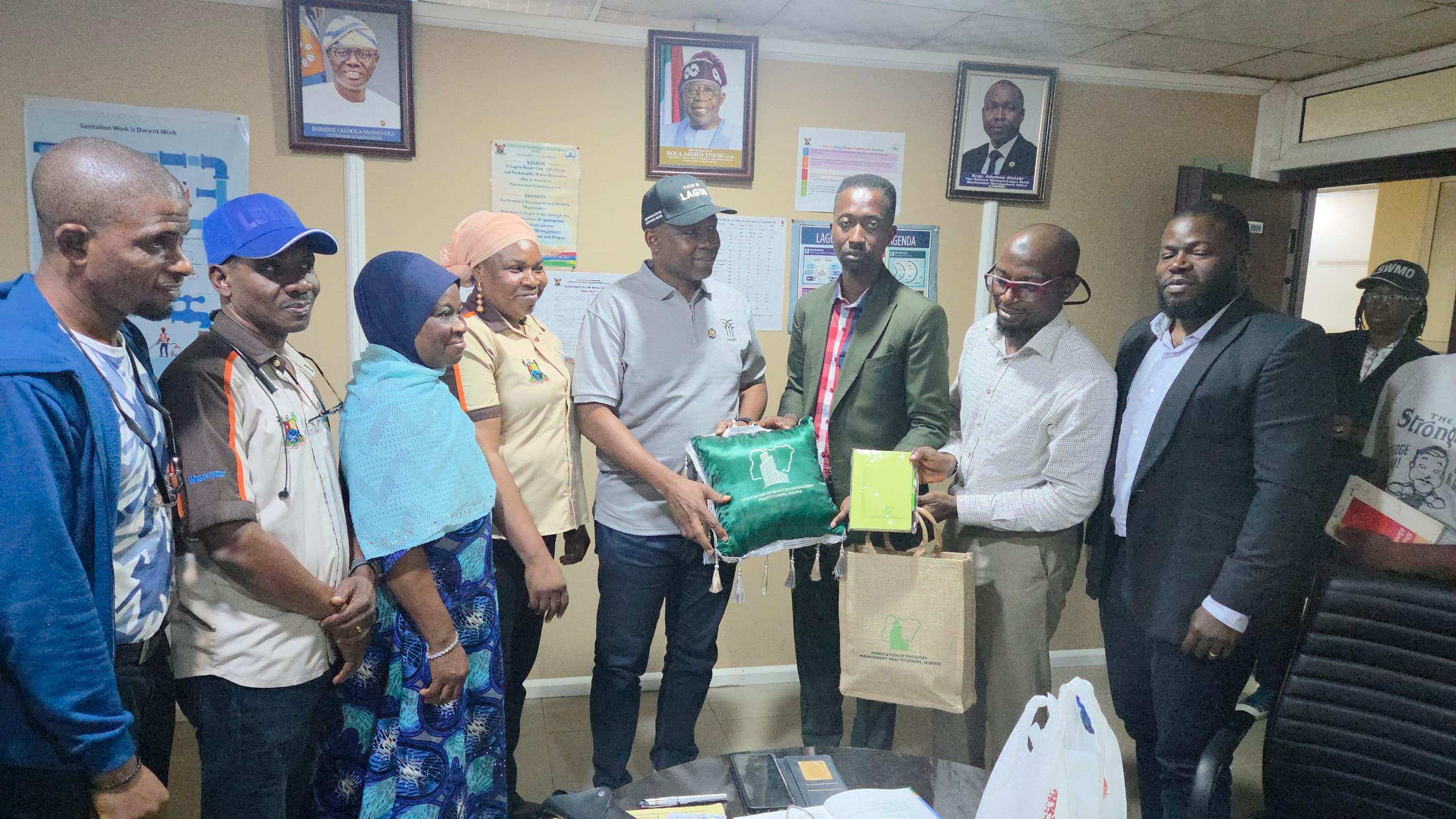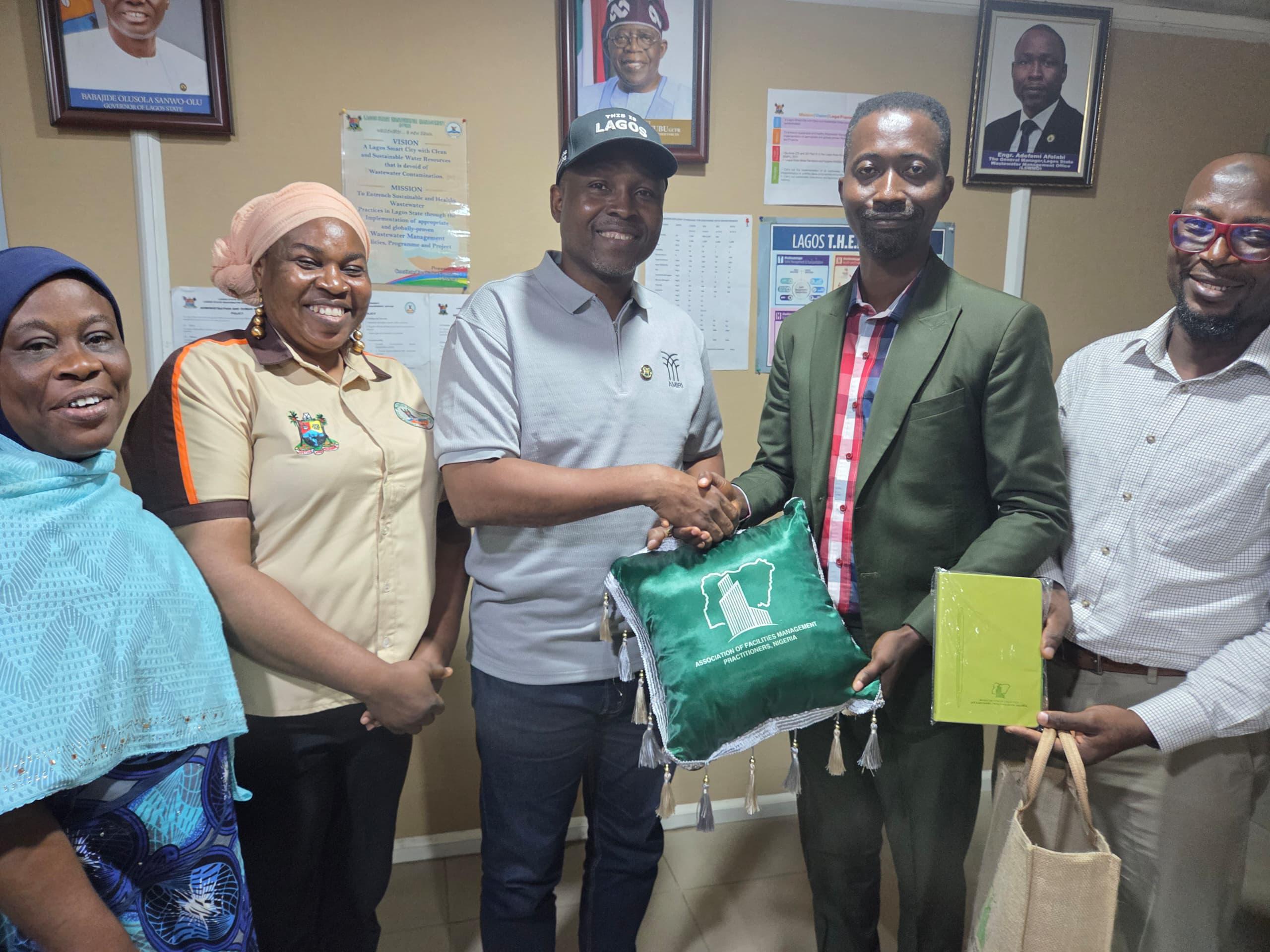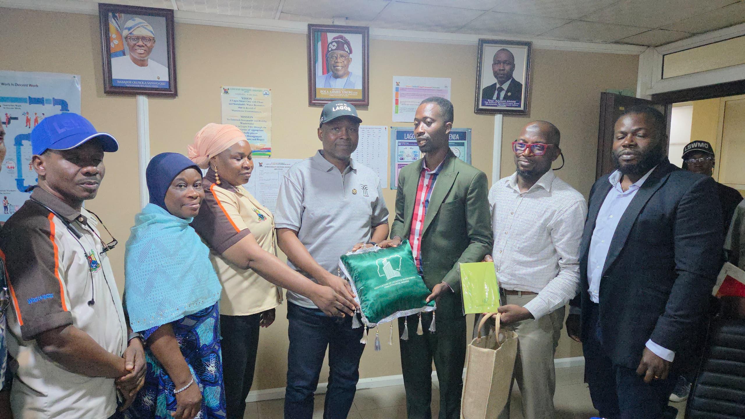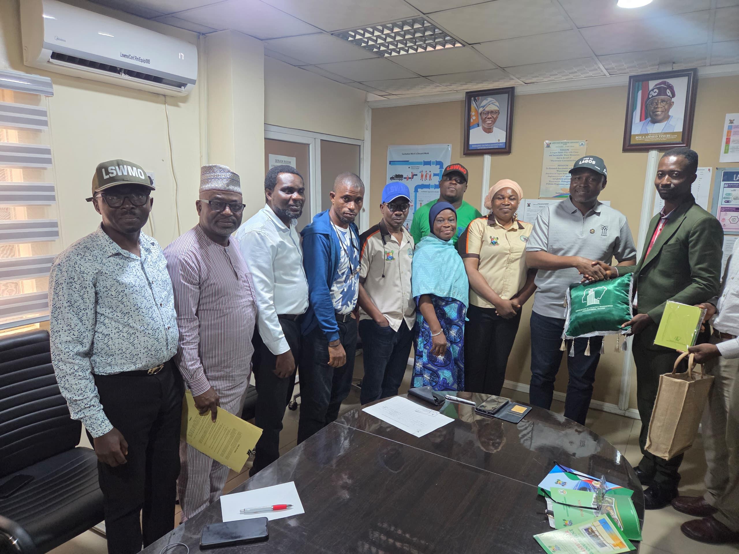 On Thursday, July 31, 2025, delegates from the Association of Facilities Management Practitioners, Nigeria (AFMPN) paid a courtesy visit to the Lagos State Wastewater Management Office (LSWMO) at its Ikeja headquarters.